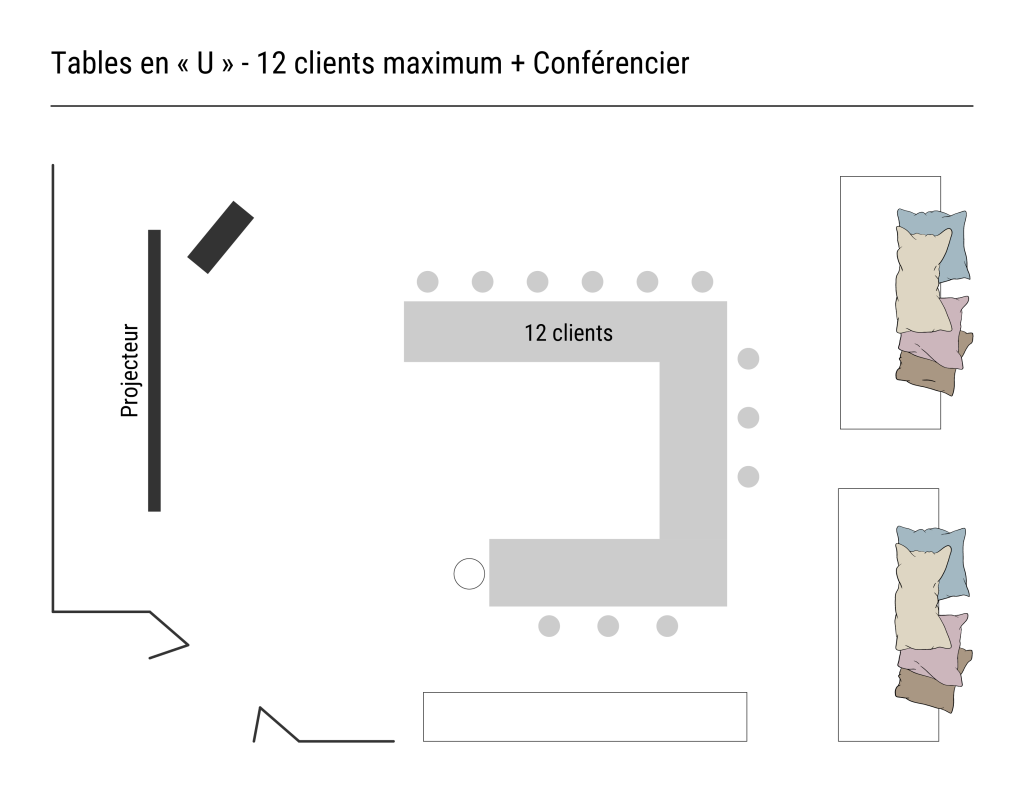 Lorsque vous pénétrez dans cette salle privée chaleureuse, vous êtes immédiatement enveloppé par une atmosphère intime. Les murs de couleur pastel et les accents de porcelaine ajoutent une touche de charme historique.